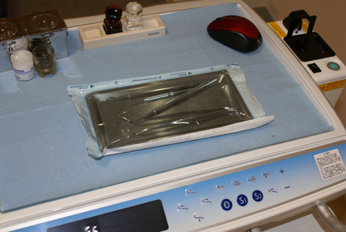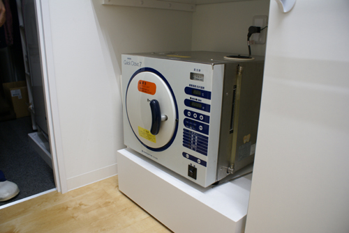 完全滅菌器(オートクレーブ)と器具機材のディスポーザブル化により衛生管理を徹底しています。紙コップやエプロンなどはディスポーザブル(使い捨て)を使用し、治療器具専用の洗浄・滅菌装置を用いるなど徹底した衛生管理を行い、院内感染の予防に努めております。